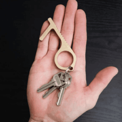 These tools have come in very, very handy during the 2020 COVID-19 pandemic. I keep one in my car and gave the other to my mother to use as she is in the high risk category. While this tool does not help with turn door knobs, it helps with opening many other doors, and the stylus tip has been lovely to use for keypads at the grocery store and atms, and atm and gas station touchscreens. They are thick and sturdy. I haven’t had them long enough to know if the color/coating will stay or possibly flake off but I am hopeful. Since these are so thick they could benefit from a split ring already being installed on them. All in all a fabulous product in a time where we need tools like these.